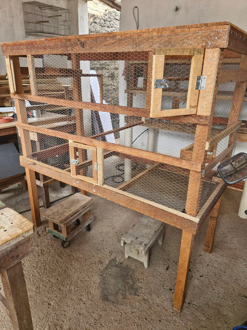 Viveiro para pássaros ou pequenas aves, pintinhos, com poleiro e ninheira. Material resistente. Medindo 1,5m de altura, 1,5 de frente, 70cm de largura. Apenas R$450. Não fazemos entrega. Tel: