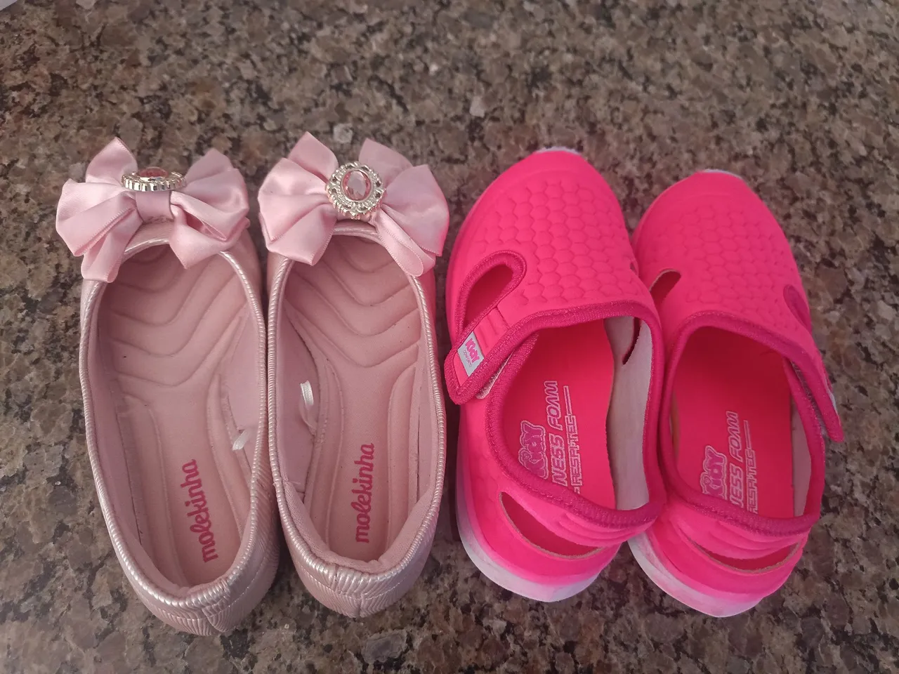 Lindos calçados infantis novos, usados apenas uma vez, perfeitos para sua pequena! Conforto e estilo garantidos com design moderno e cores vibrantes. Não faço entrega! Numeração da sapatilha:26 Numeração do sapatênis:25