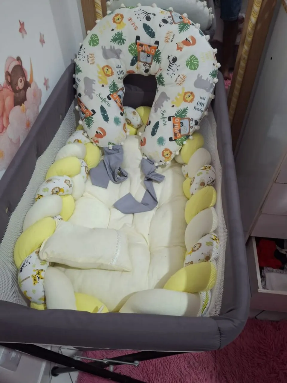 Lindo berço portátil, ideal para o conforto e segurança do seu bebê. Design moderno e cores vibrantes que encantam, proporcionando um ambiente acolhedor e seguro para as sonecas e noites de sono do seu pequeno.