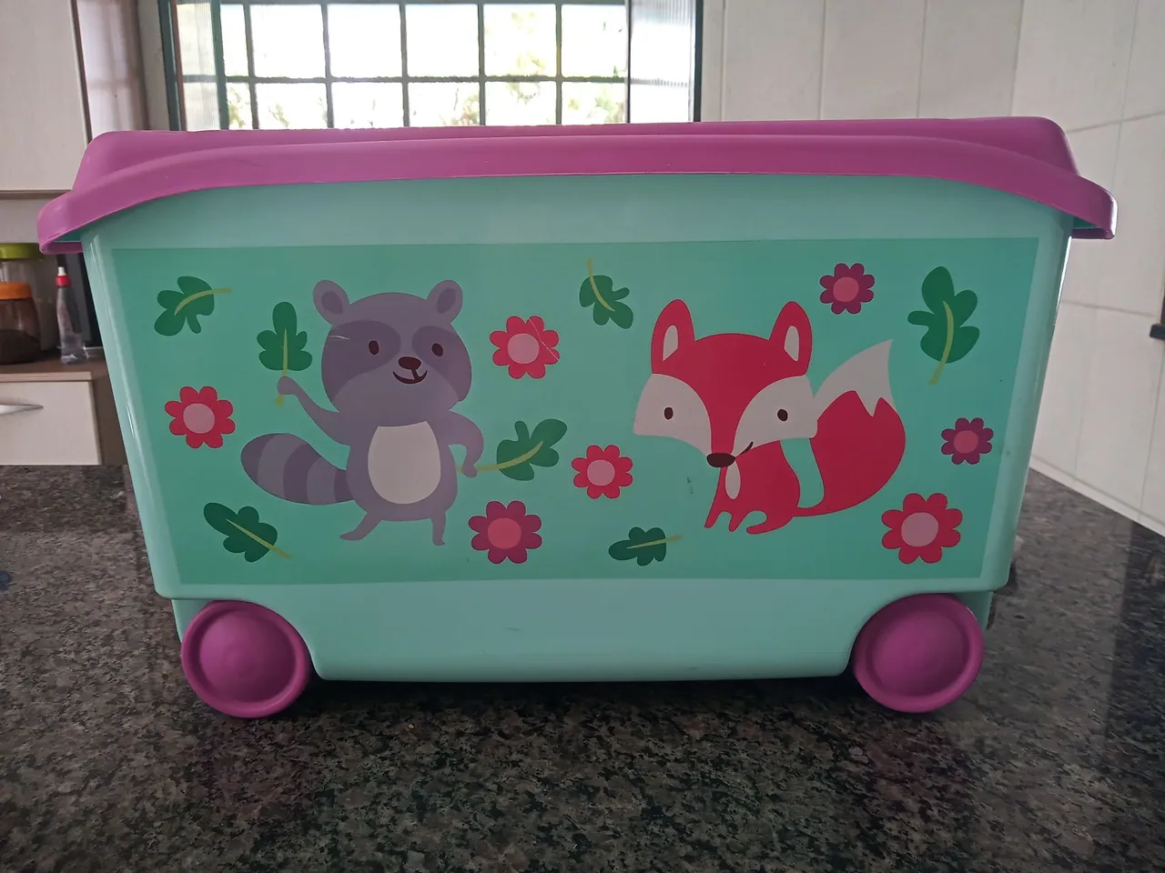 Linda caixa organizadora infantil com capacidade para 50 litros, perfeita para guardar brinquedos, livros e outros objetos. Com design divertido, ela traz um toque de charme e organização ao quarto das crianças. Ideal para manter o ambiente arrumado e as brincadeiras sempre à mão!