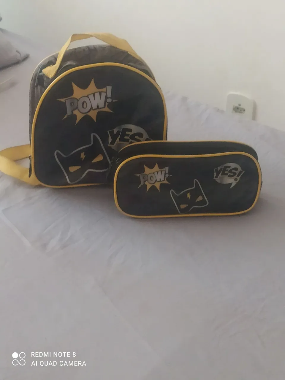 Kit infantil super estiloso para os pequenos Com marcas de uso. Lancheira quase não foi usada!