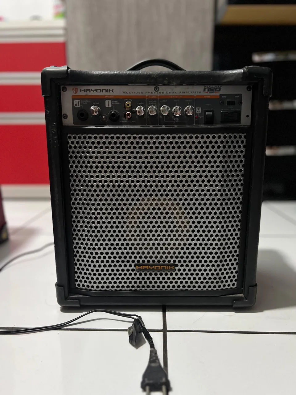 Funcionando, usado. Bom pra teclado, voz, violão ou retorno.
