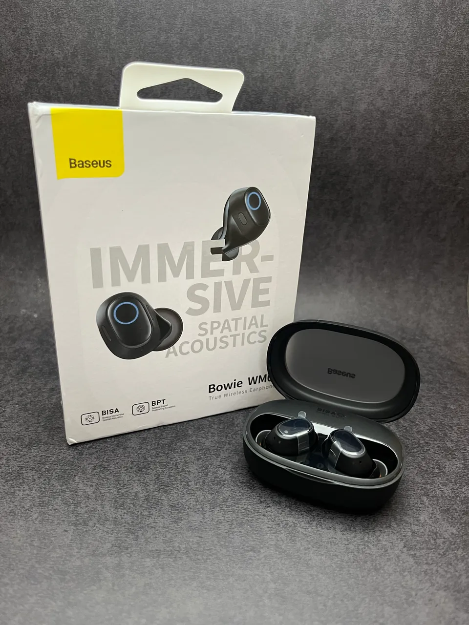 Fone Bluetooth Marca: Baseus Modelo: Bowie WM03 Cor disponível: Preto Bluetooth 5.3 BISA - Baseus Acústica Espacial Imersiva Design ergonômico Até 8 horas com uma carga Cabo Tipo-C para carregamento Borrachas ajustáveis Manual