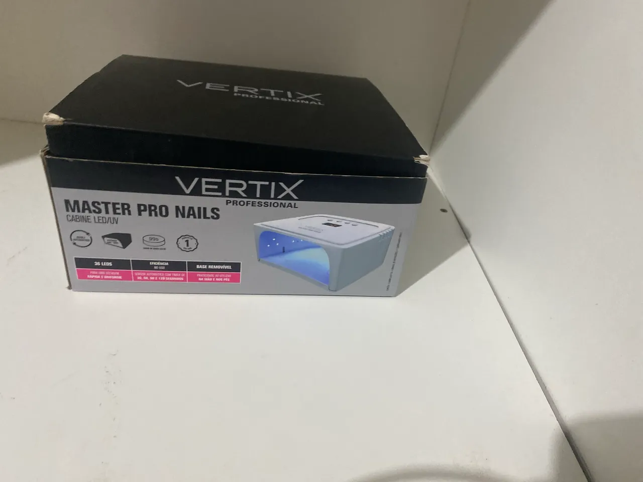 Apresentamos a Cabine LED/UV Vertix Master Pro Nails! Com 36 LEDs e base removível, oferece secagem rápida e eficiente para suas unhas. Perfeita para uso profissional e doméstico.