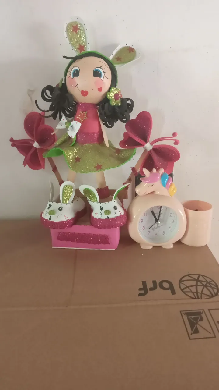 Boneca de Eva 3d linda e relógio despertado de cabeceira.