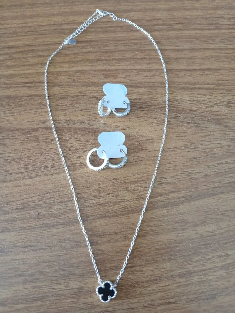 Lindo conjunto de cordão e brincos de prata! O cordão traz um pingente elegante e os brincos complementam o visual com delicadeza. Perfeito para quem busca sofisticação e estilo.