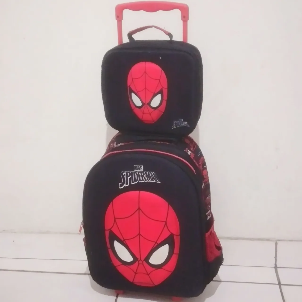 Mochila do spider-man, ela é de rodinha mas pode ser usada nas costas e acompanha lancheira térmica.