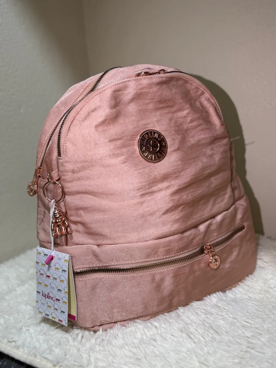 Mochila Kipling rosa vibrante, perfeita para o dia a dia. Design moderno e espaçoso, ideal para carregar tudo o que você precisa com estilo e praticidade.