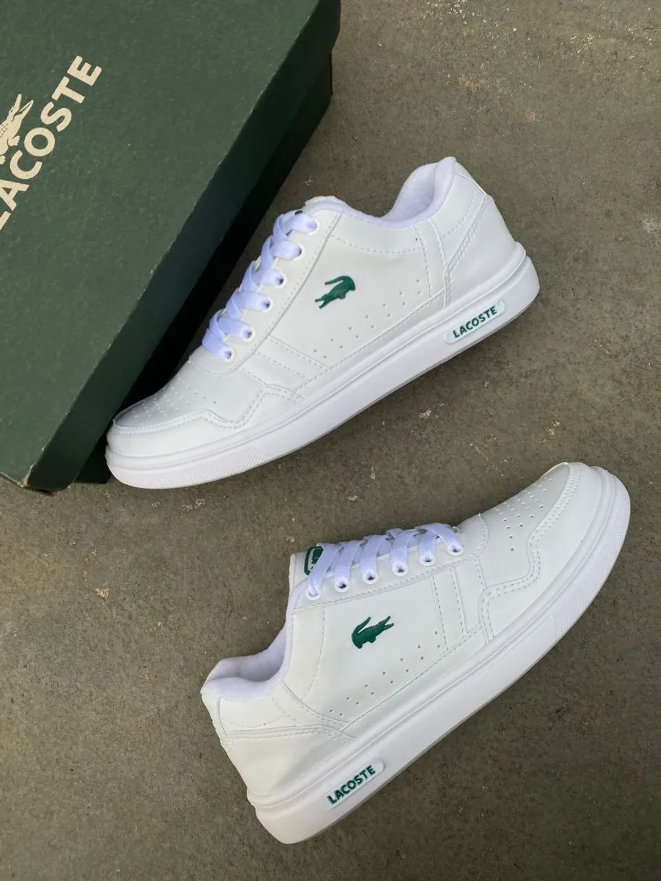 Sapatenis Lacoste branco, perfeito para um visual moderno e elegante. Conforto e estilo em cada detalhe, ideal para diversas ocasiões.