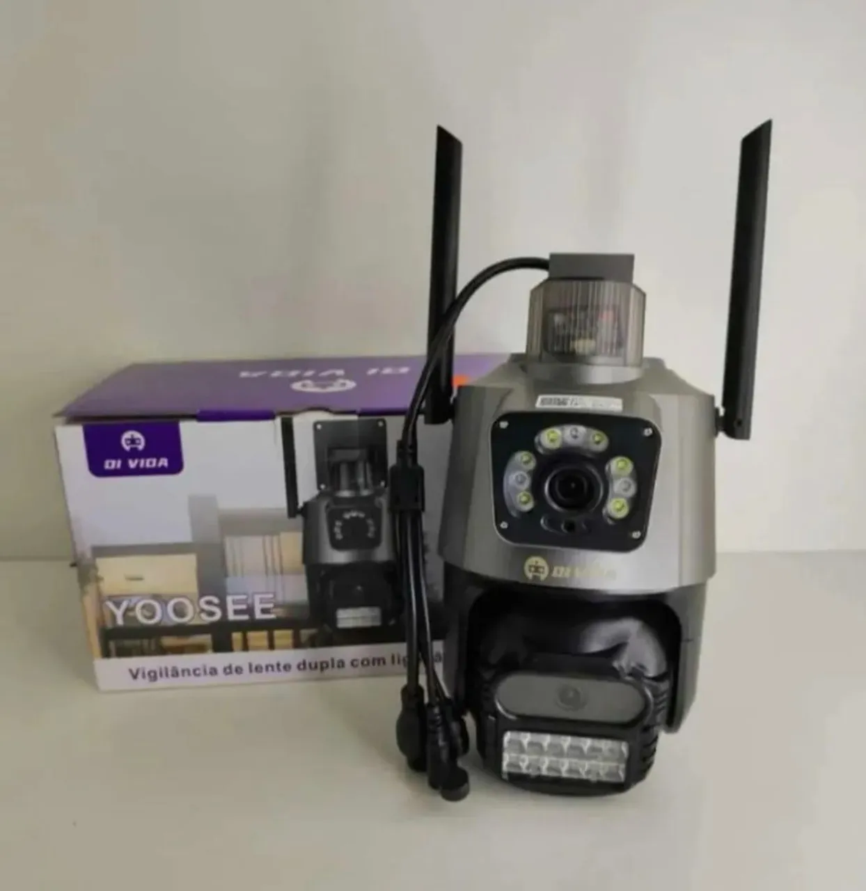Câmera Dupla, perfeita para monitorar e garantir a segurança do seu espaço. Com design moderno e fácil instalação, oferece vigilância eficiente e imagens de alta qualidade. Ideal para residências e comércios.