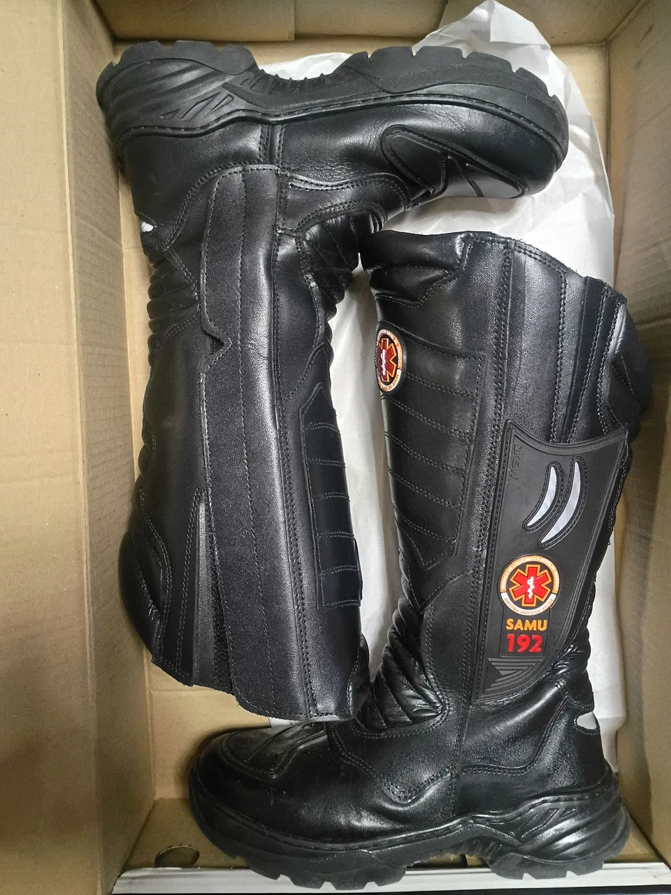 Bota do SAMU, ideal para profissionais da saúde que buscam segurança e conforto. Design moderno e resistente, proporcionando proteção e durabilidade em diversas situações. Foi usada apenas 3 vezes. Número 37 marca spectrun