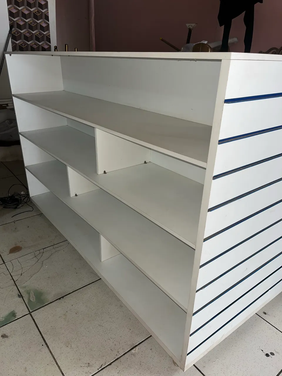 Balcão expositor canaletado, ideal para expor seus produtos de forma organizada e atrativa. Design moderno e funcional, perfeito para otimizar o espaço da sua loja e valorizar seus produtos.