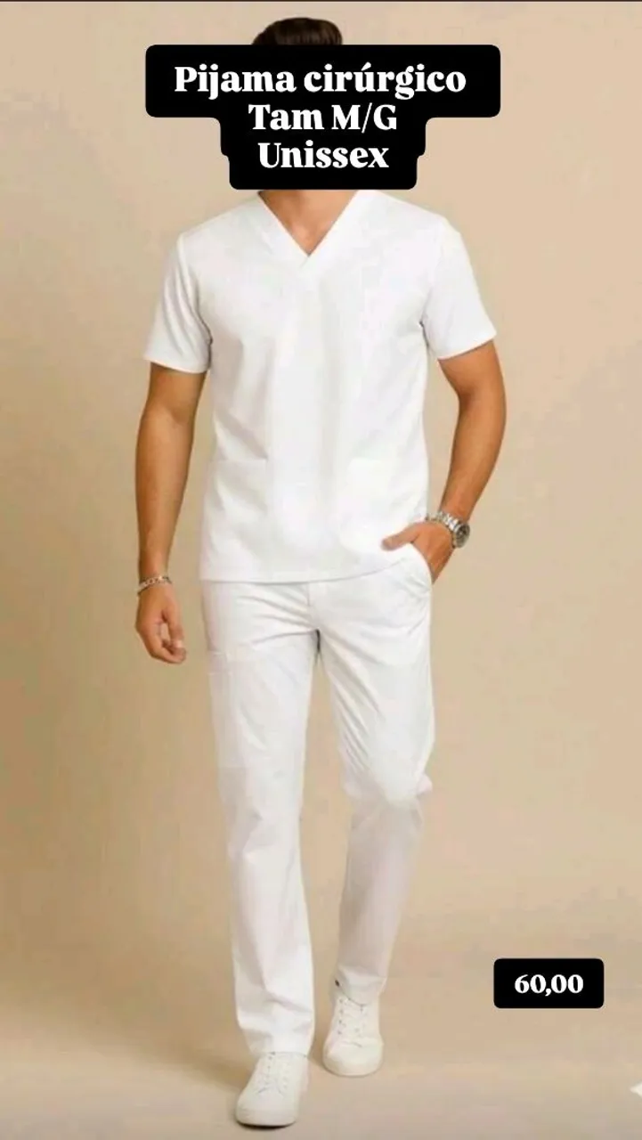 Pijama cirúrgico unissex, ideal para profissionais da saúde que buscam conforto e praticidade. Confeccionado em tecido leve e resistente, perfeito para o dia a dia.