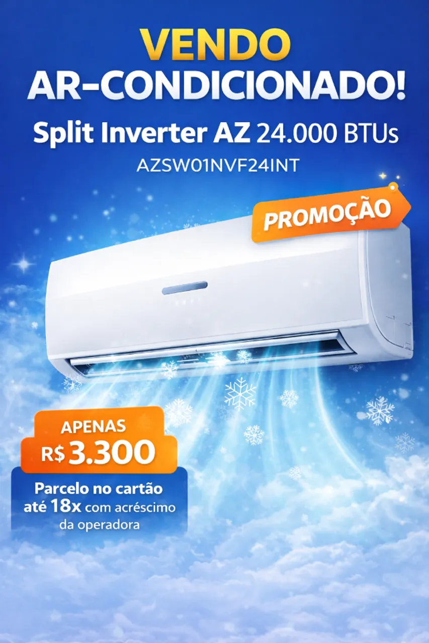 Desfrute do conforto e eficiência com o Ar Condicionado Split Inverter AZ de 24.000 BTUs! Tecnologia de ponta para climatizar seu ambiente com economia e praticidade. Aproveite o parcelamento facilitado e garanta já o seu!