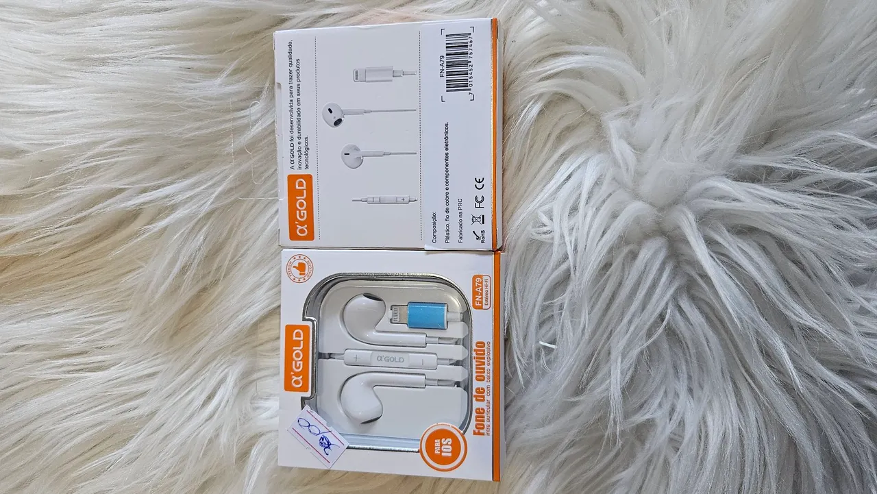 Fone de ouvido intra auricular ?'GOLD com design elegante e som estéreo de alta fidelidade. Ideal para quem busca qualidade e conforto ao ouvir suas músicas e atender chamadas.