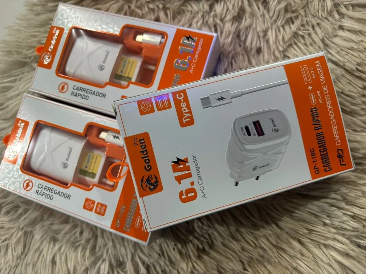 Carregador rápido tipo C e V8 Golden 6.1A, ideal para quem busca praticidade e velocidade no carregamento rápido .