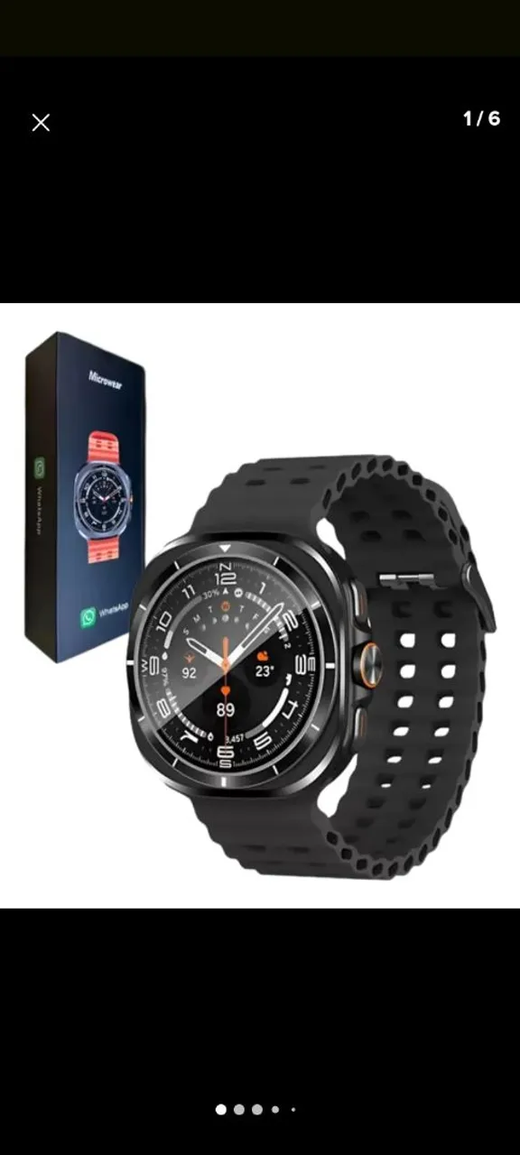 Smartwatch com design moderno e diversas funcionalidades para facilitar seu dia a dia. Monitore sua saúde e receba notificações direto no seu pulso. Resistente a água. Garantia. Lacrado.