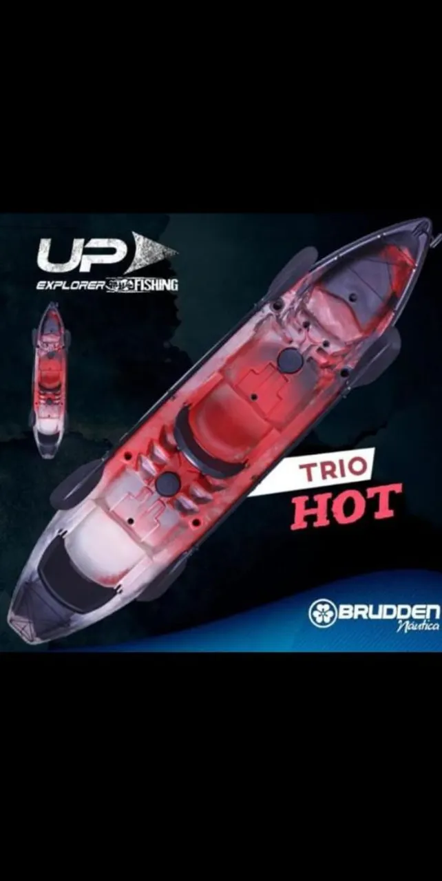 Caiaque BRUDDEN de dois lugares preto e vermelho, de brinde três coletes preto e vermelho de 50 70 e 90 kg
