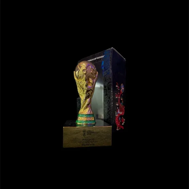 Exclusiva mini taça da Copa do Mundo, uma obra-prima banhada a ouro. Celebre a glória do futebol com elegância e estilo. Edição limitada, perfeita para colecionadores e amantes do esporte. Leve para casa um pedaço da história dourada do futebol mundial.