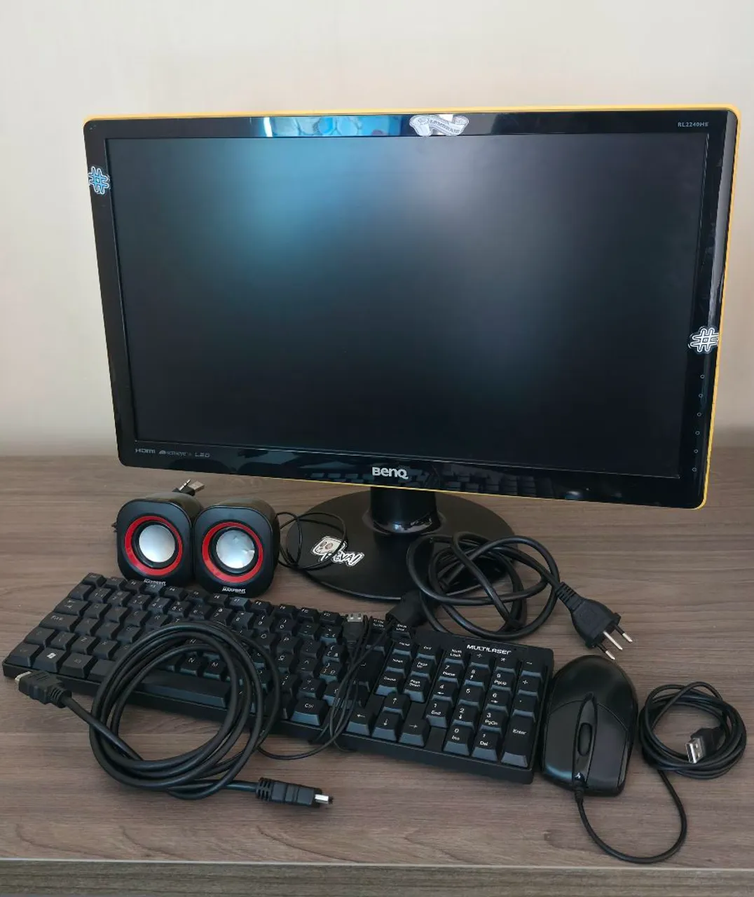 Kit completo para suas tarefas diárias! Monitor Benq com alta qualidade de imagem, teclado e mouse para uma experiência completa. Ideal para trabalho e lazer. (Acompanha todos os cabos)