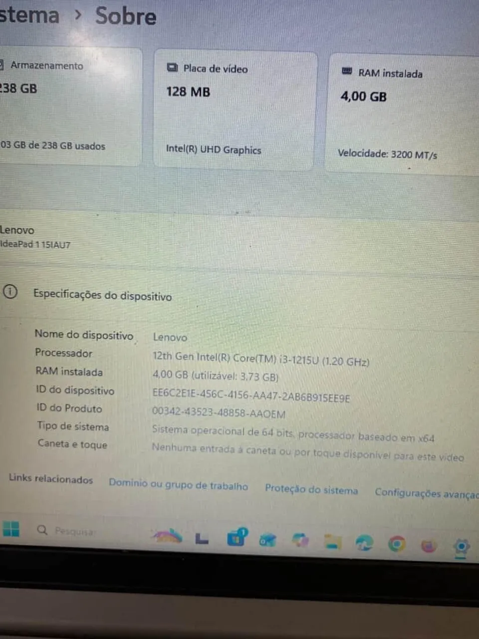 Notebook Lenovo IdeaPad 1 com processador Intel Core i3, 4GB de RAM e tela de alta resolução. Perfeito para suas tarefas diárias com desempenho e eficiência.
