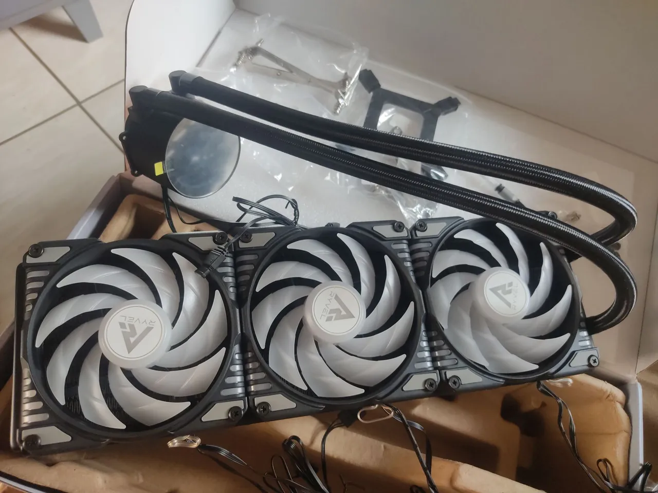 water cooler 360mm NOVO. nunca usado. iluminação argb 3 pin. incluído pasta térmica suporta todos os sokets tenho disponível modelo preto e branco. whatsapp
