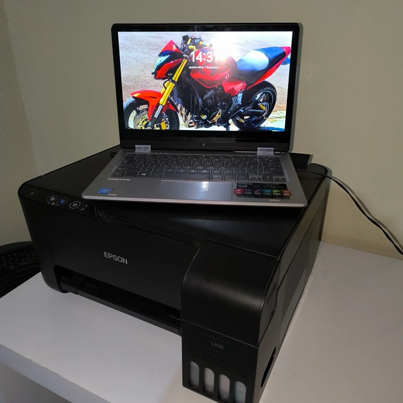 A impressora Epson L3110 é perfeita para quem busca qualidade e economia! Vendo a impressora junto com o notebook, tenho todos os cabos a impressora está perfeita sem defeito nenhum, somente um leve relevo na tampa pq esqueci meu secador de cabelo em cima ?, mas não danificou nada está funcionando normalmente sem nenhum problema vendo por 450 reais os dois para mais informações (95)... ver número