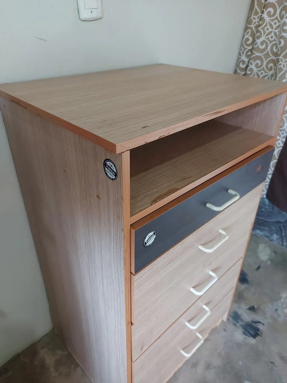 cômoda semi nova com 5 gavetas,toda em MDF,conservada.
