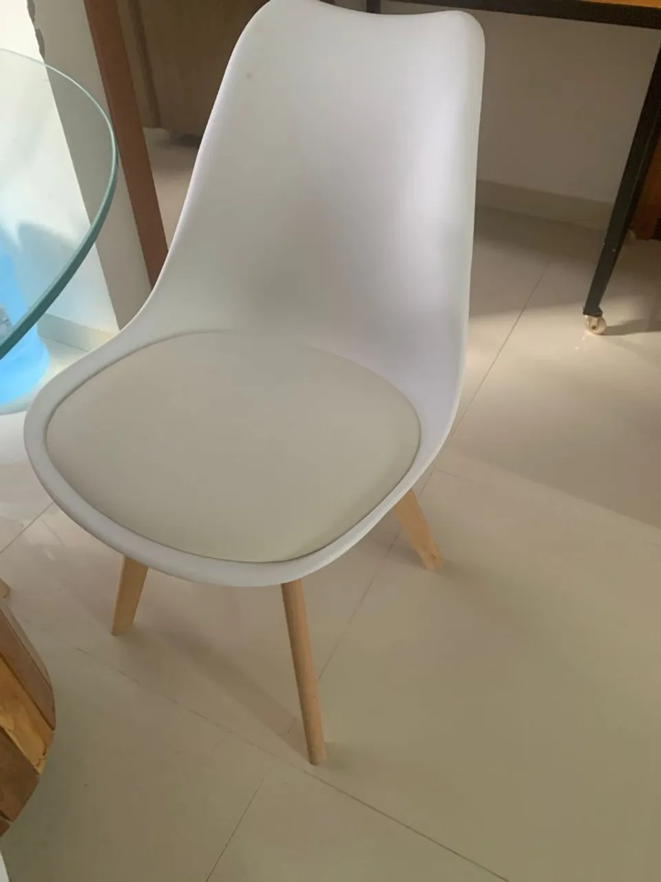 Cadeiras modernas e confortáveis, perfeitas para sua casa ou escritório. Design elegante. Pouco usadas, porém tem uma delas q precisa mudar o estofado por está manchada. Pés em madeira, cadeiras elegantíssima e moderna. Tenho 04 unidades.