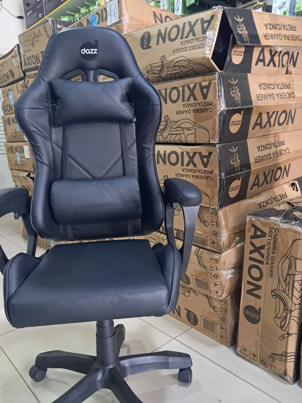 Cadeira gamer preta com design ergonômico e almofadas que proporcionam conforto e suporte durante longas sessões de jogos. Ideal para gamers que buscam estilo e performance.
