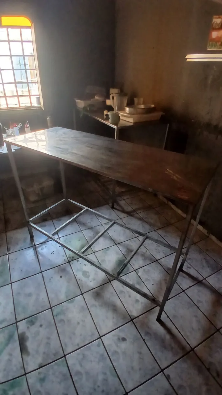 Linda mesa em aço inox, perfeita para diversos ambientes. Design moderno e resistente, ideal para sua empresa.