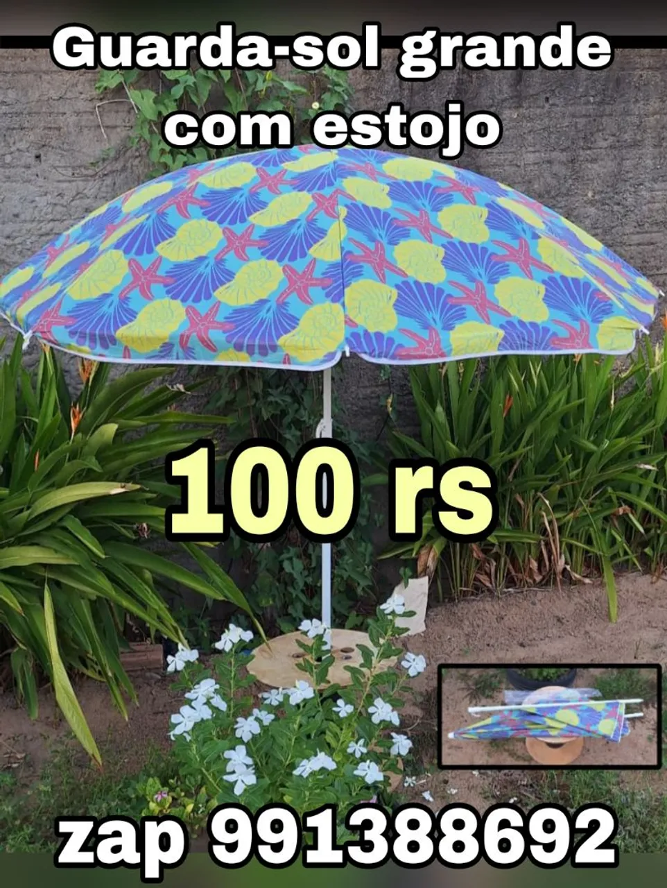 Proteja-se do sol com este guarda-sol grande e charmoso. Usado só um dia .. com estojo. Aceito cartão.. aceito propostas .. 991 38 86 92