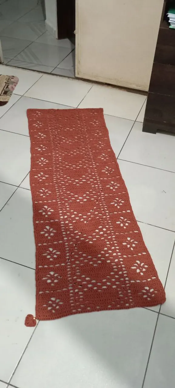 Lindo tapete passadeira de crochê, perfeito para dar um toque especial à sua casa. Feito com fio de alta qualidade, este tapete é durável e charmoso. Ideal para corredores ou onde sua criatividade mandar! Faço também sob encomenda