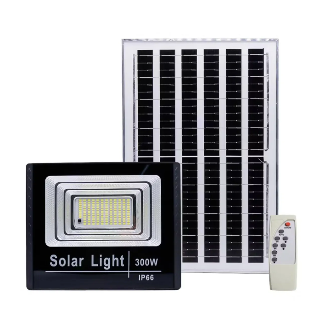 Ilumine seus espaços com o Refletor Solar de 300W! Possui painel solar e controle remoto para fácil operação. Perfeito para áreas externas, econômico e sustentável.