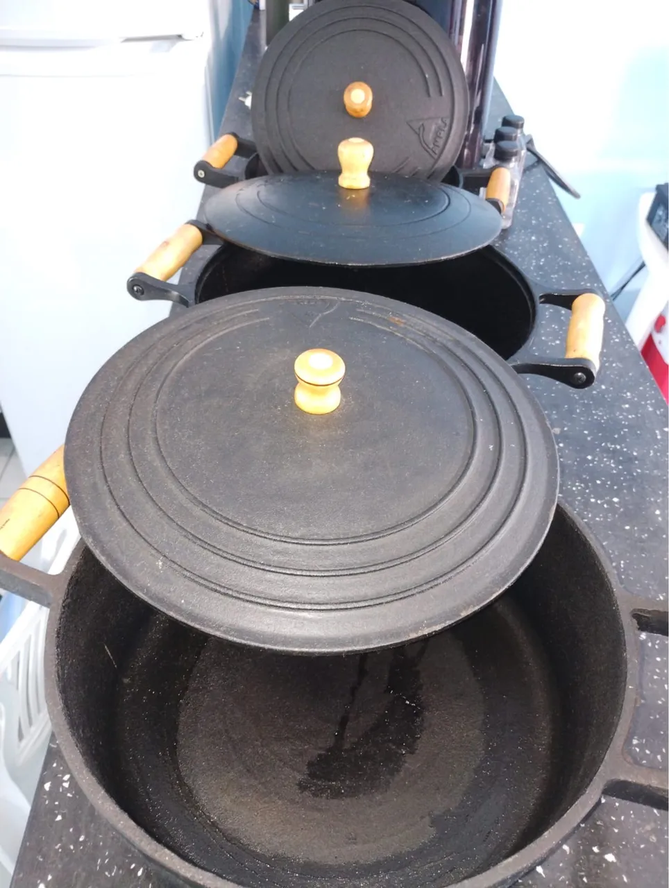Vendo 3 panelas de ferro de excelente qualidade ? resistentes, duráveis e feitas para a vida toda. Panelas que não se desgastam com o tempo e podem passar de geração para geração.