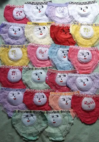 Calcinha infantil em algodão, modelo Bunda Rica com cores diversas R$10,00 cada.