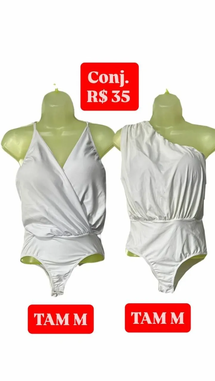 Conjunto de bodys branco, ideais para compor looks modernos e estilosos. Perfeitos para quem busca conforto e elegância em uma única peça.