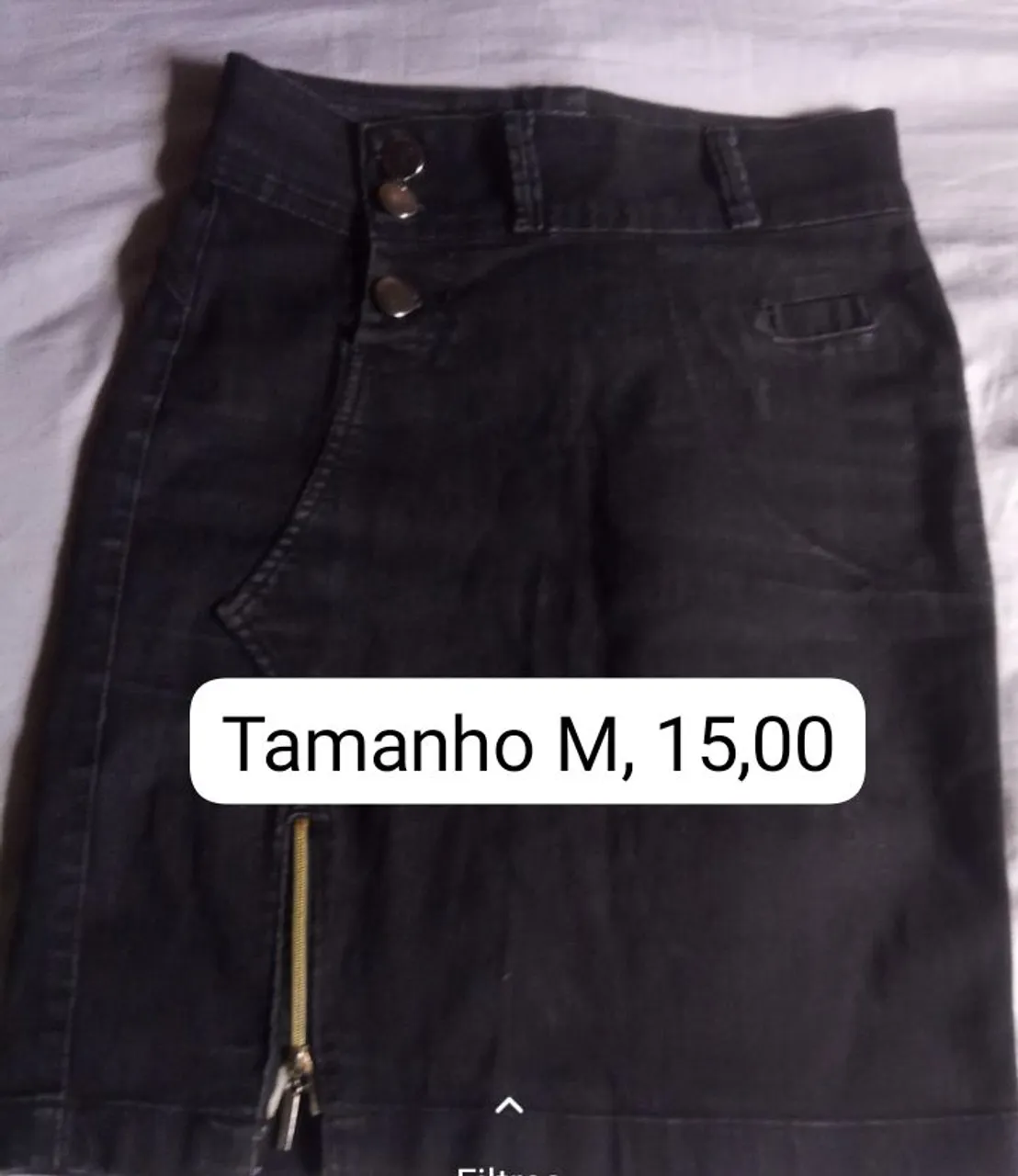 Linda saia jeans preta, perfeita para diversas ocasiões! Combine com diferentes blusas e crie looks incríveis. Peça versátil e estilosa para o seu guarda-roupa!