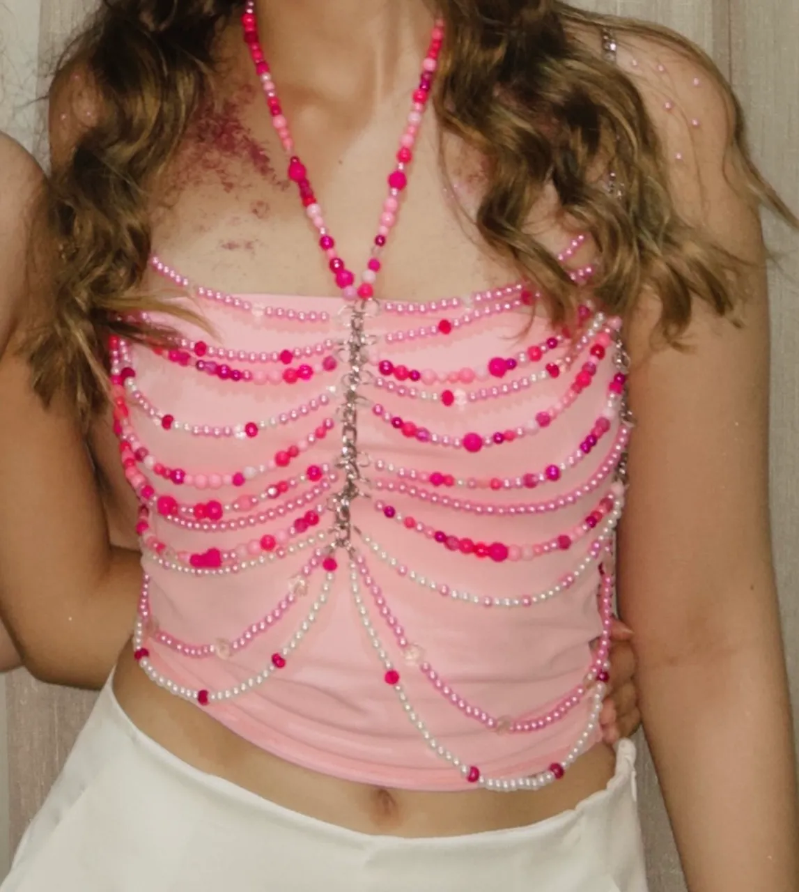 Lindo top de pérolas, perfeito para um look fashion e moderno no carnaval . Destaque-se com essa peça única e cheia de estilo!