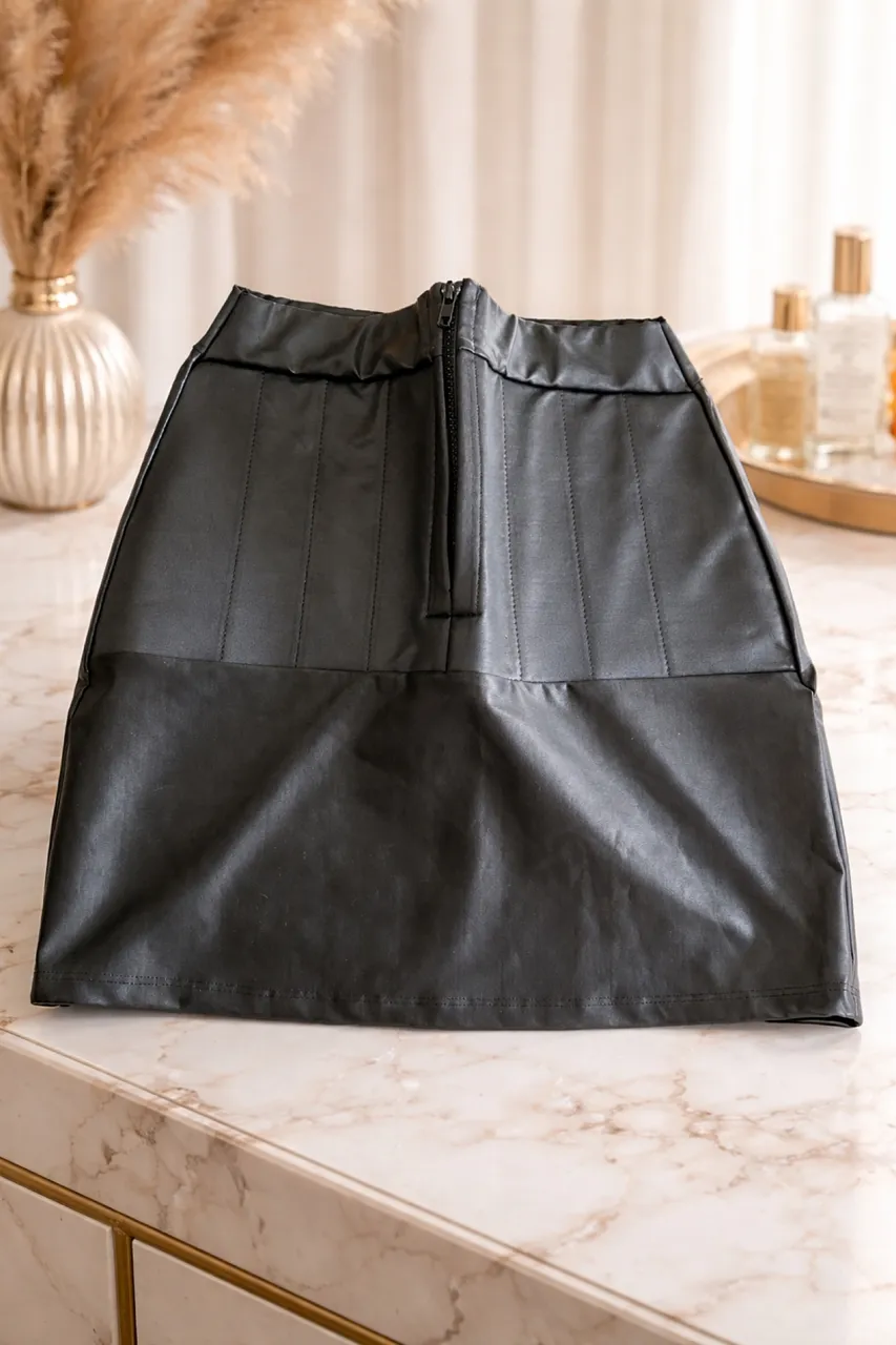 Linda saia de couro, perfeita para compor looks estilosos e modernos. O couro confere um toque de sofisticação e atemporalidade à peça.