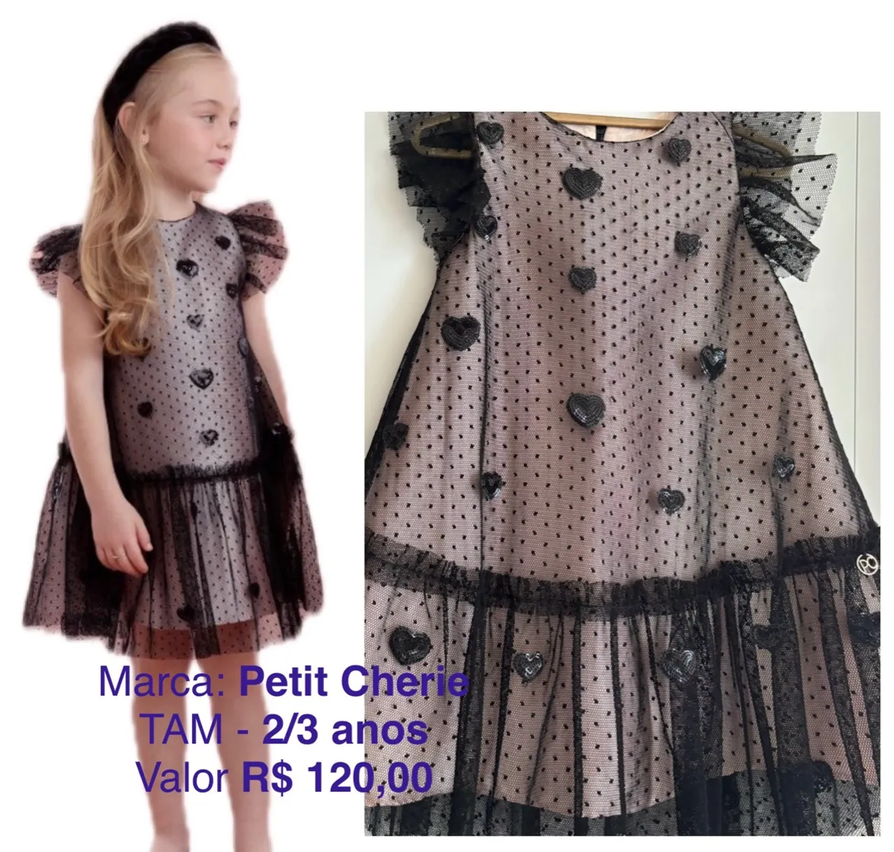 Vestido infantil de tule com detalhes em corações, perfeito para festas e ocasiões especiais. A peça é confeccionada em tecido leve e confortável, com forro para maior segurança e conforto. Possui mangas bufantes e babados na barra, que deixam o vestido ainda mais charmoso. Ideal para meninas de 2 a 3 anos.