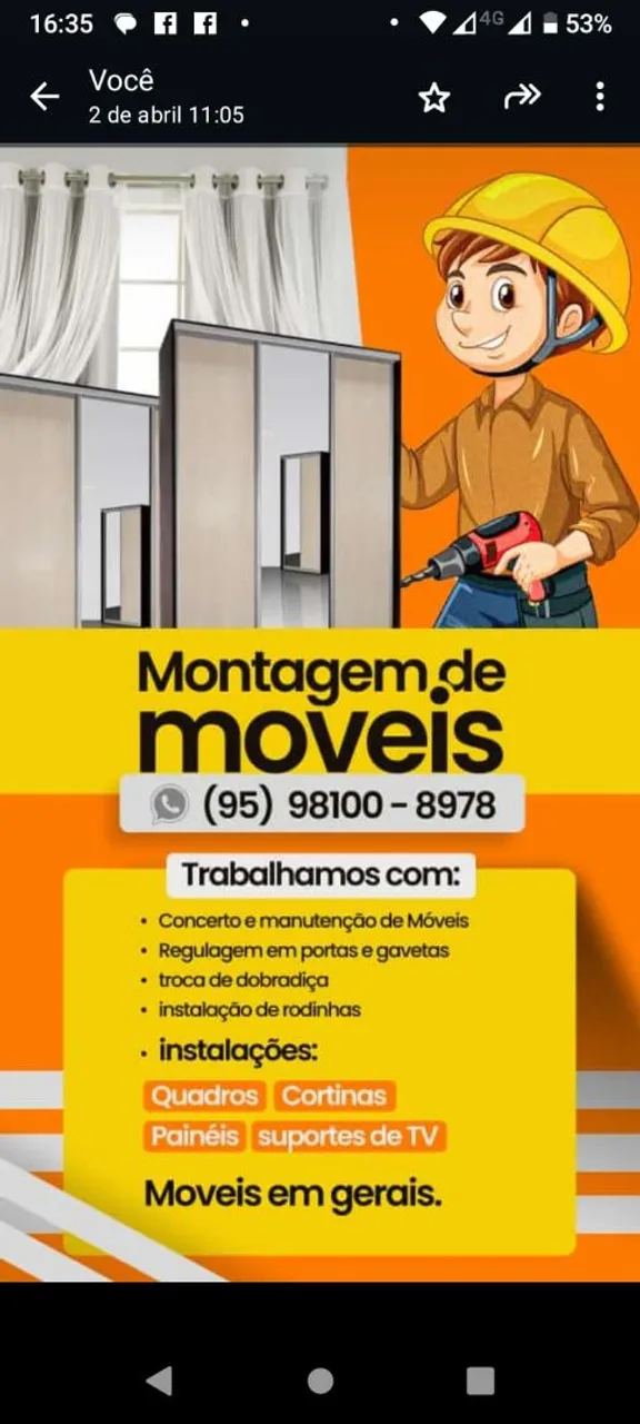 Montador de móveis e reparos em geral Nome elisson Souza Tel