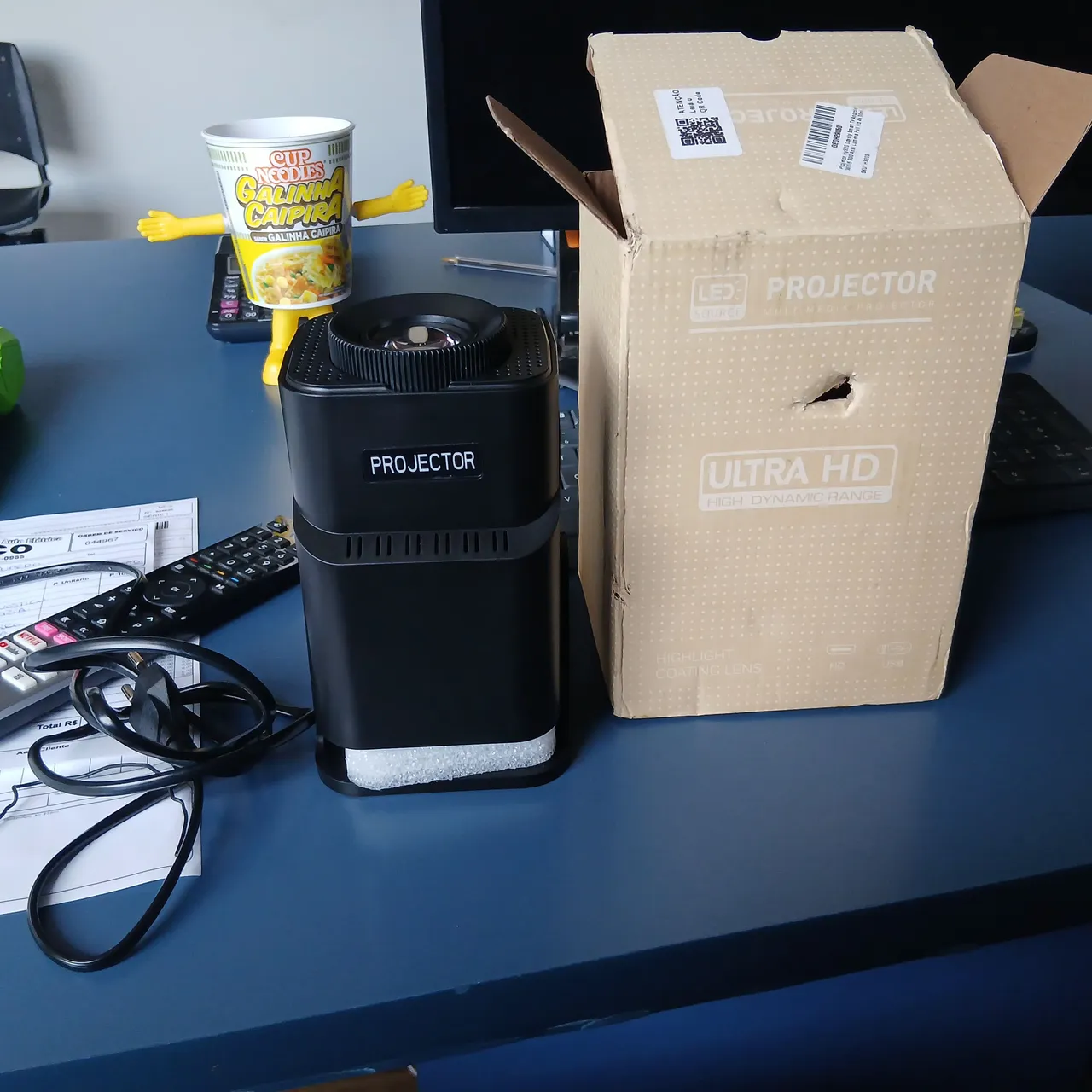 Projetor Hypro320 Android, ideal para transformar sua sala em um cinema. Desfrute de imagens em alta definição e cores vibrantes. Leve a experiência de tela grande para casa com este projetor!